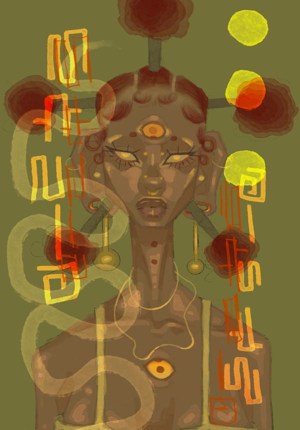 This piece is simply a black woman whose features and style are so “eye” catching that any other person may find it strange or unusual. but [they are] really something so beautiful that many black people have had for generations. This piece also includes the third eye which means it takes us to a place of higher consciousness and enlightenment. It is also associated with intuition, insight, and mysticism. I wanted to include all that in this piece because it is definitely something that has had a big impact on the future for many years.